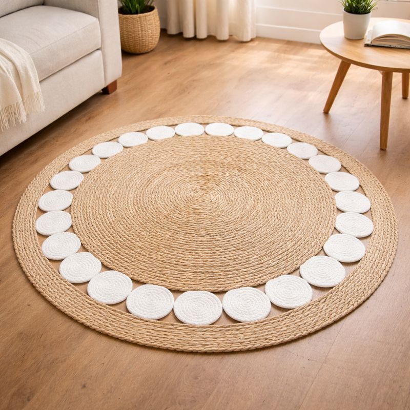 Alfombra de fibra natural. Ideal para living, dormitorio o espacios decorativos.
