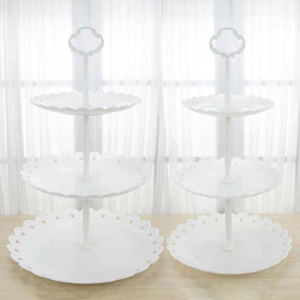 Hermoso porta cup cake, de 3 pisos con bandejas finamente decoradas. - SOLO FORMATO CORAZON DE LOS PLATOS