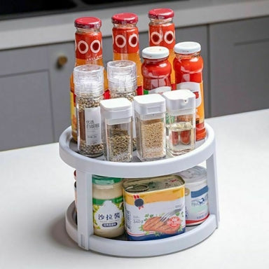 Bandeja organizadora giratoria dos pisos. Con antideslizante.