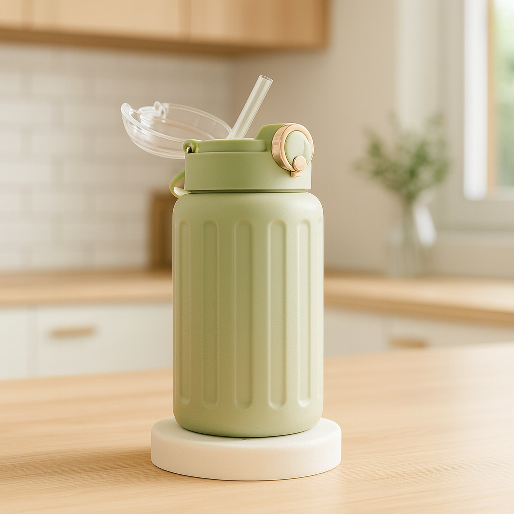 Botella termica con traba y sorbete. COLORES DISPONIBLES: Verde y crema