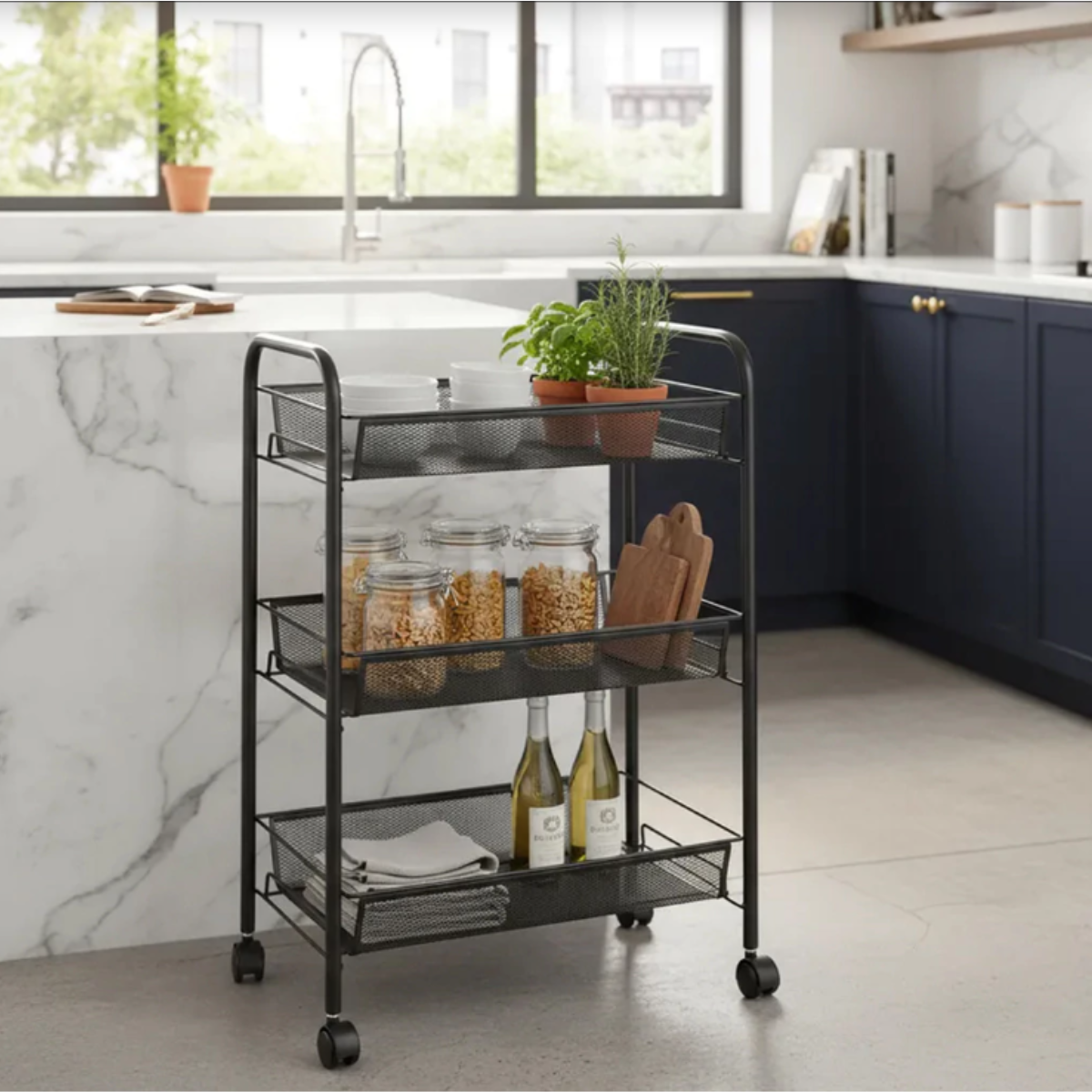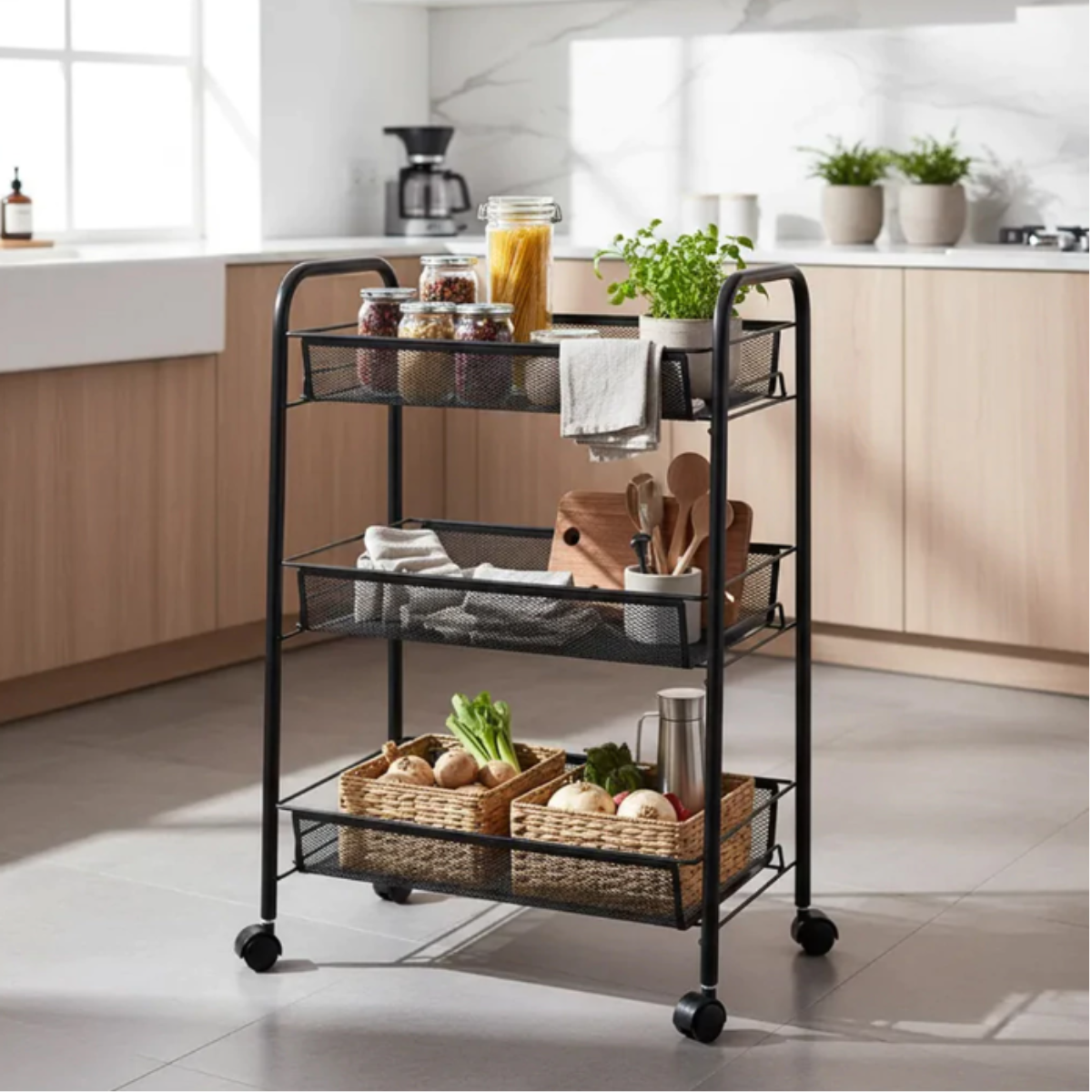Este carrito de 3 niveles es una solución perfecta para organizar y transportar tus objetos en casa o en la oficina. Con su diseño multifuncional, puedes usarlo como carrito de cocina, estantería móvil o incluso para transportar herramientas y materiales.