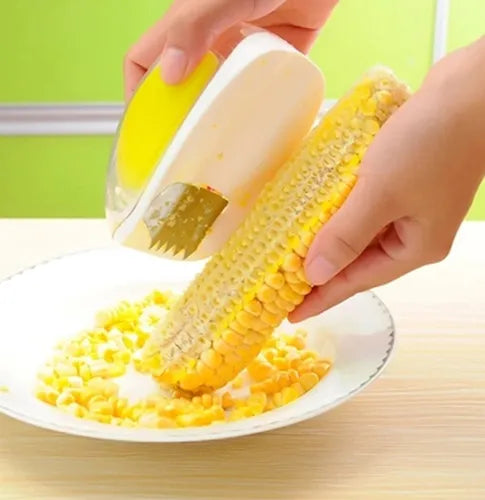 Pelador y desgranador de maíz, confeccionado íntegramente en plástico de alto impacto, lo que proporciona durabilidad ante las caídas. Muy fácil de limpiar y de usar. De cómodo agarre para un corte rápido de maíz. Carcasa de plástico y diseño ondulado de hoja de acero inoxidable. Único con deposito de granos. MEDIDAS aproximadas: 8 x 12 x 7 cm