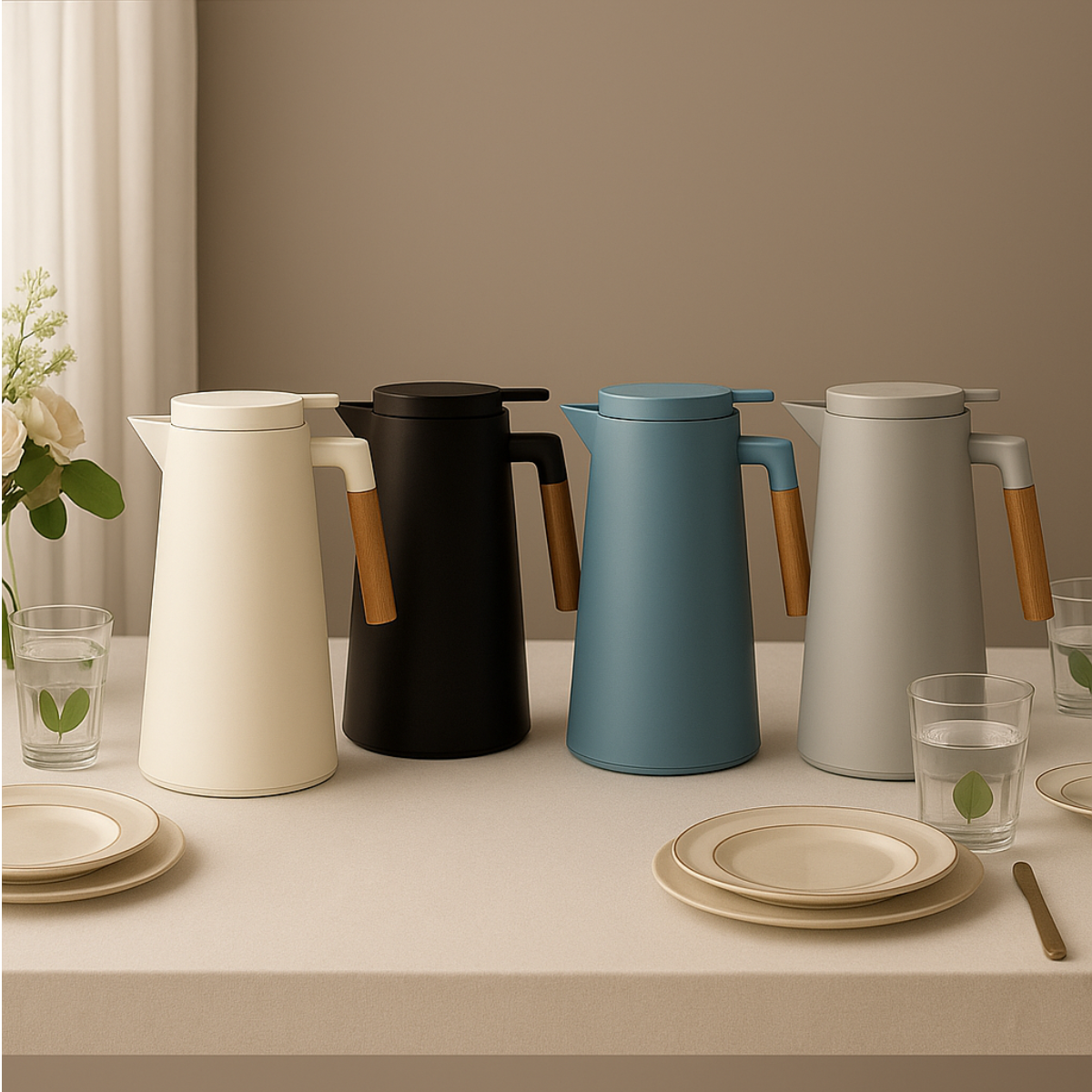 Termo Jarra Térmica Nórdica Asa Bamboo Moderna Frío Calor - CAPACIDAD 1 LT