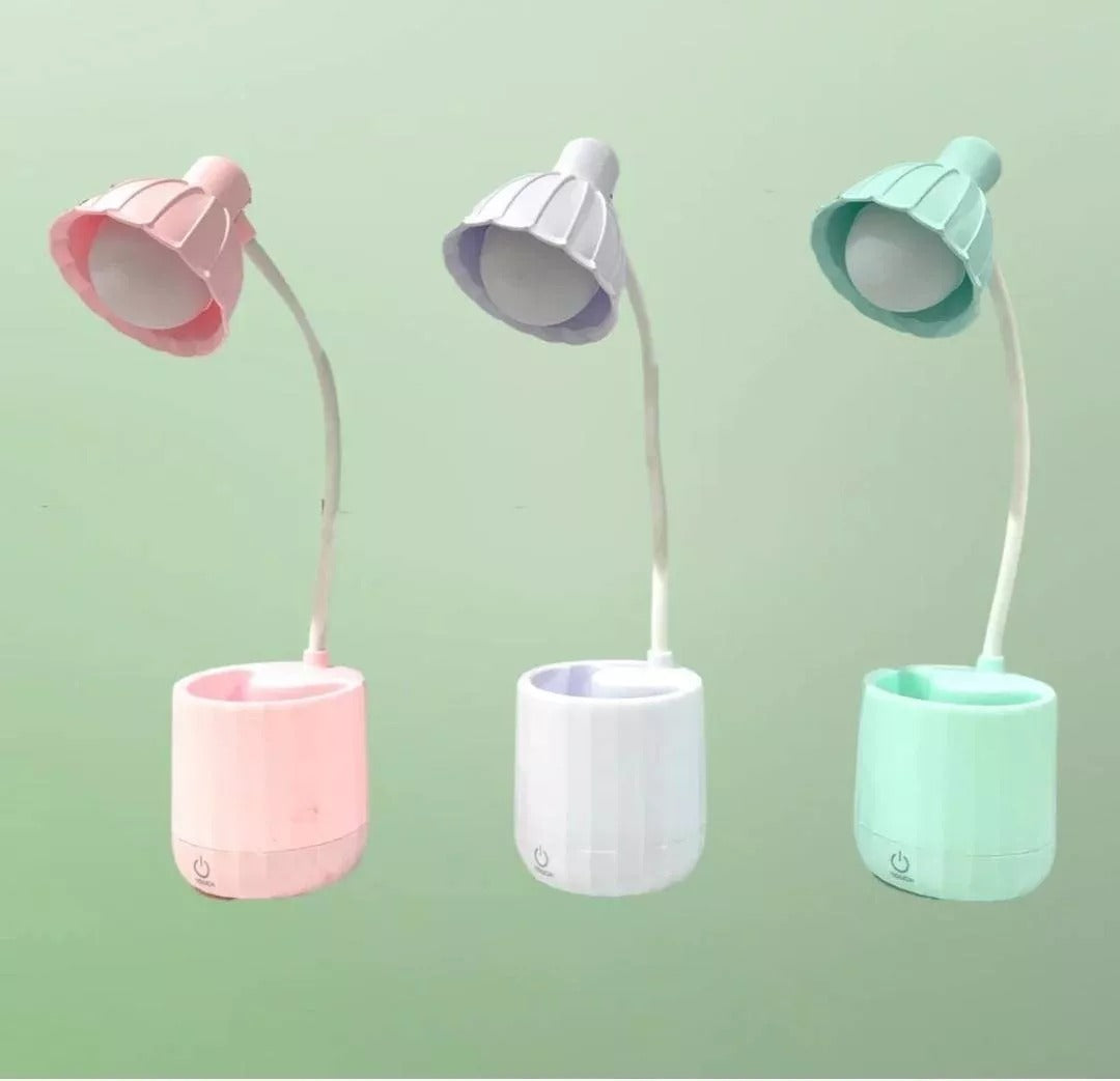 Lampara portátil recargable con espacio para guardar plumas y lápices.
