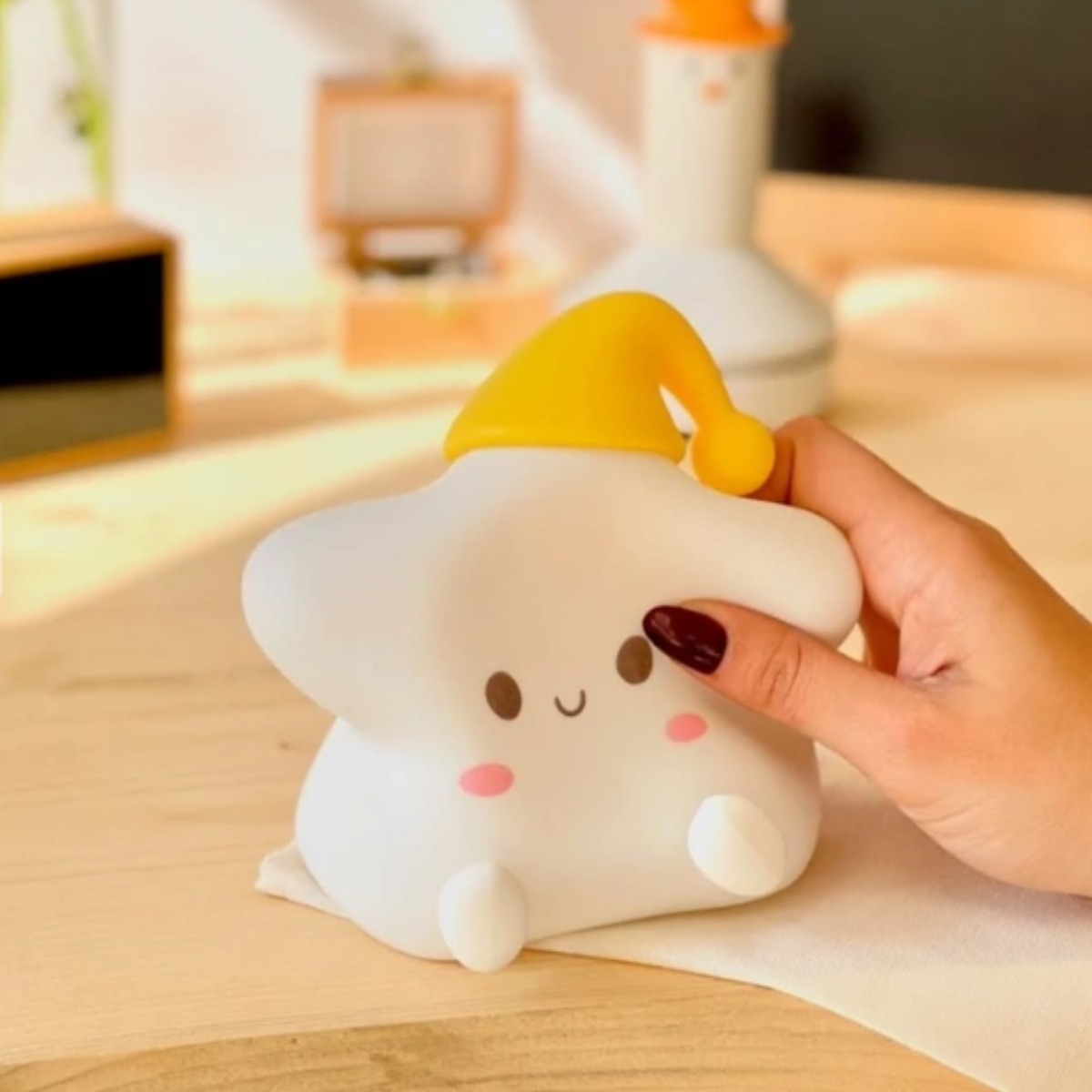 Viene con un cable cargador USB, facilitando su recarga en cualquier lugar. Su forma de estrella es ideal para estimular la imaginación y el sueño de los niños. Al no calentarse, permite que los más pequeños la manipulen con confianza.
