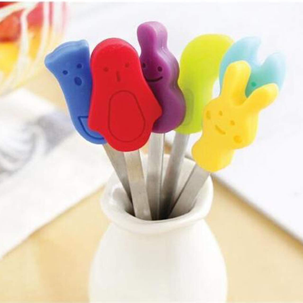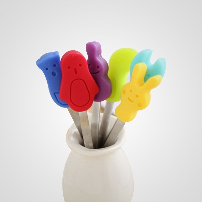 Originales copetineros en forma de animalitos. Son pequeños tenedores de acero inoxidable con mangos decorativos de silicona en forma de animales , ideales para frutas, postres y aperitivos.