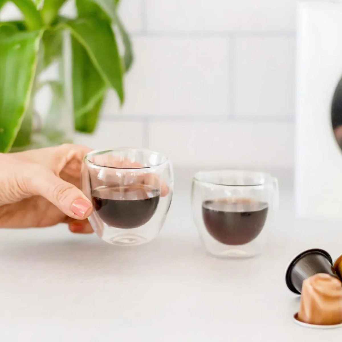 Set de 2 vasos de vidrio doble con capacidad de 80 ml.