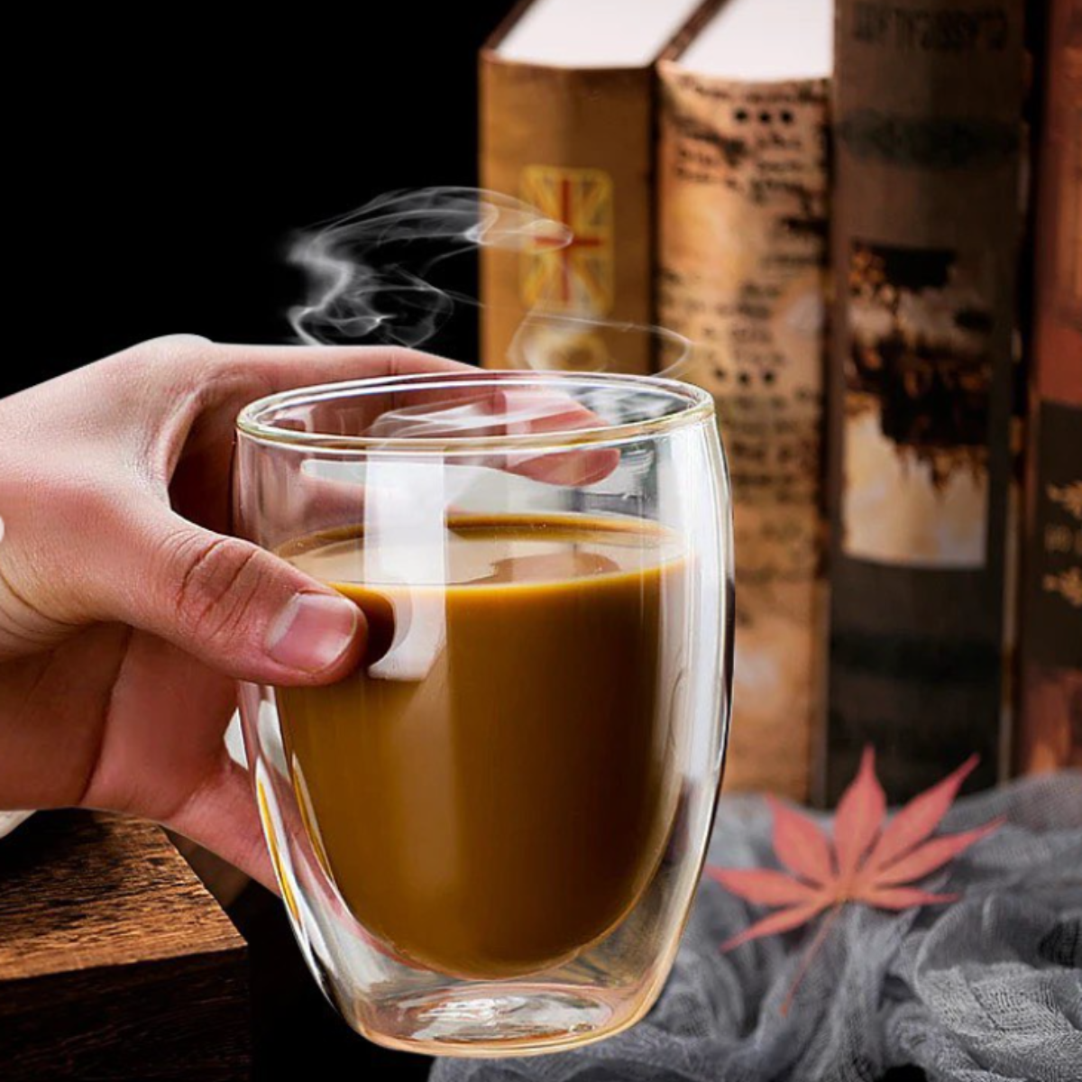 Set de 3 vasos vidrio doble de 250 ml, prácticos y versátiles.