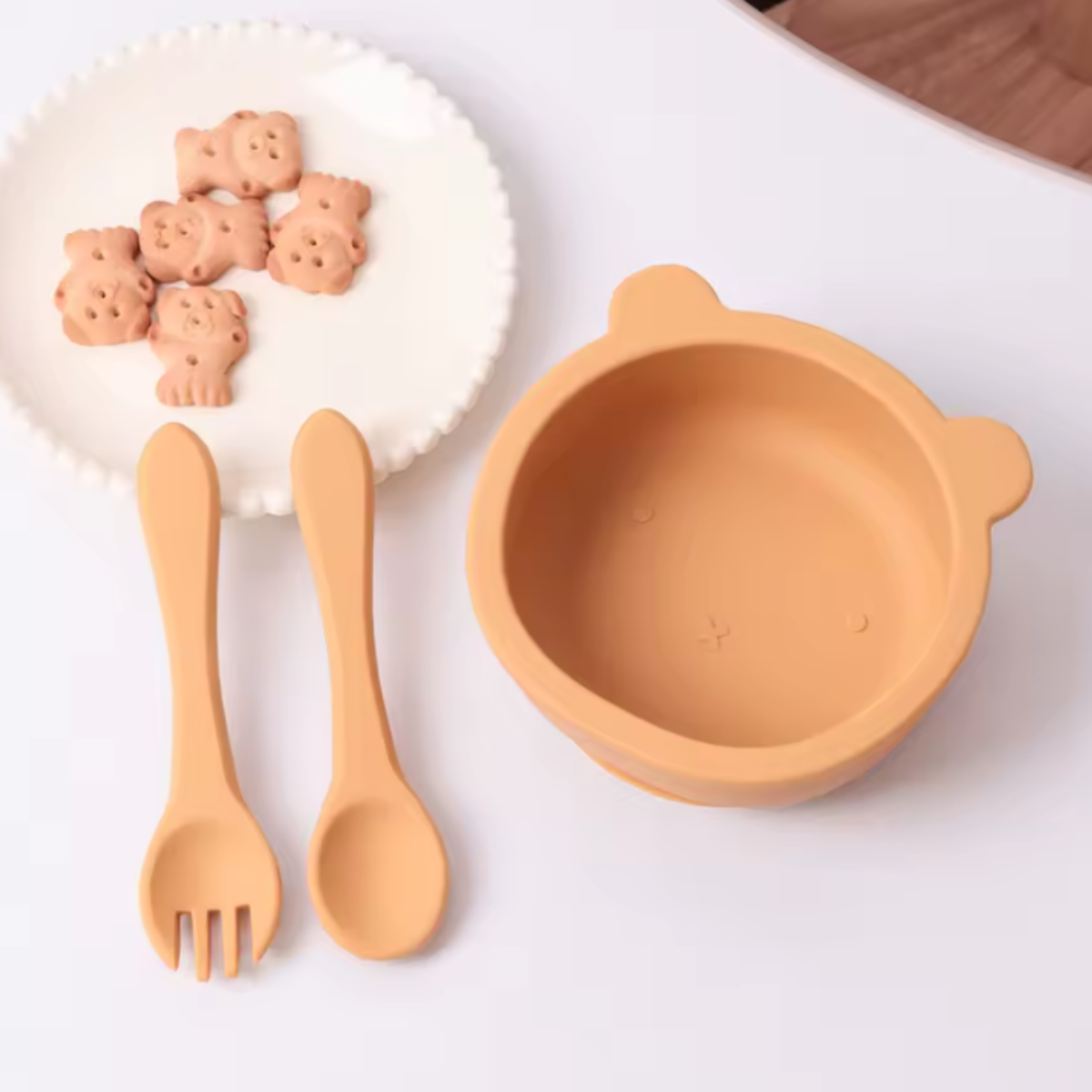 Set de cubiertos de silicona para bebé. Su diseño ergonómico y materiales suaves garantizan una experiencia segura y cómoda para el bebé. Fabricado en silicona de grado alimenticio, libre de BPA y resistente al calor. Ideal para fomentar la autonomía de los niños en la alimentación, evitando accidentes con puntas metálicas. Fácil de limpiar, apto para lavavajillas