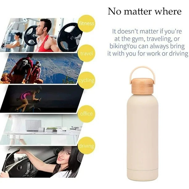 Botella metálica térmica de 750 cc ideal para llevar a todos lados, con tapa simil madera - COLORES: BLANCO, NEGRO, GRIS Y BRONCE