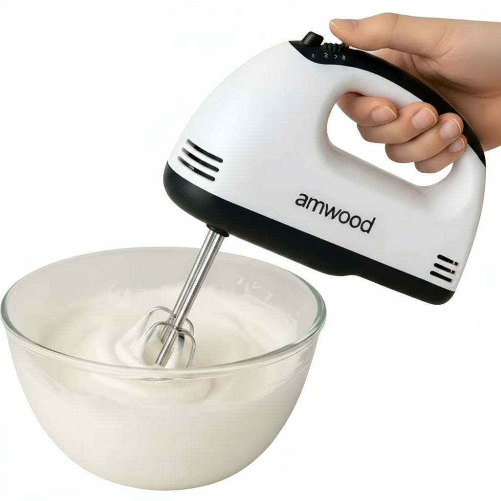 Batidora manual compacta, segura, práctica y funcional con accesorios para batir y amasar. Con 7 velocidades
