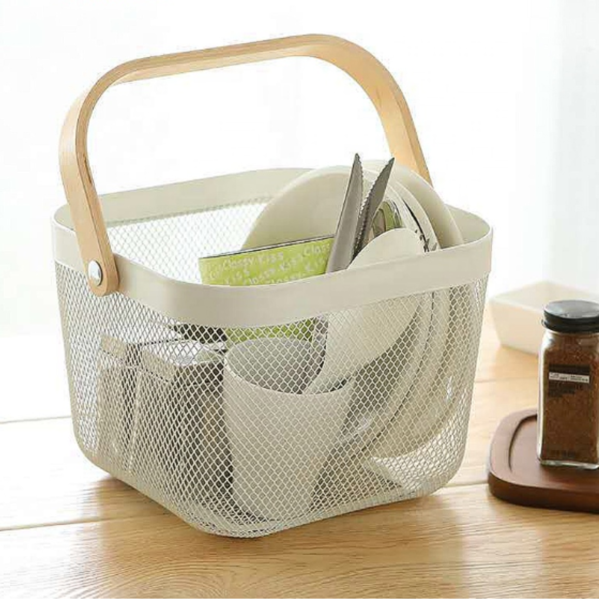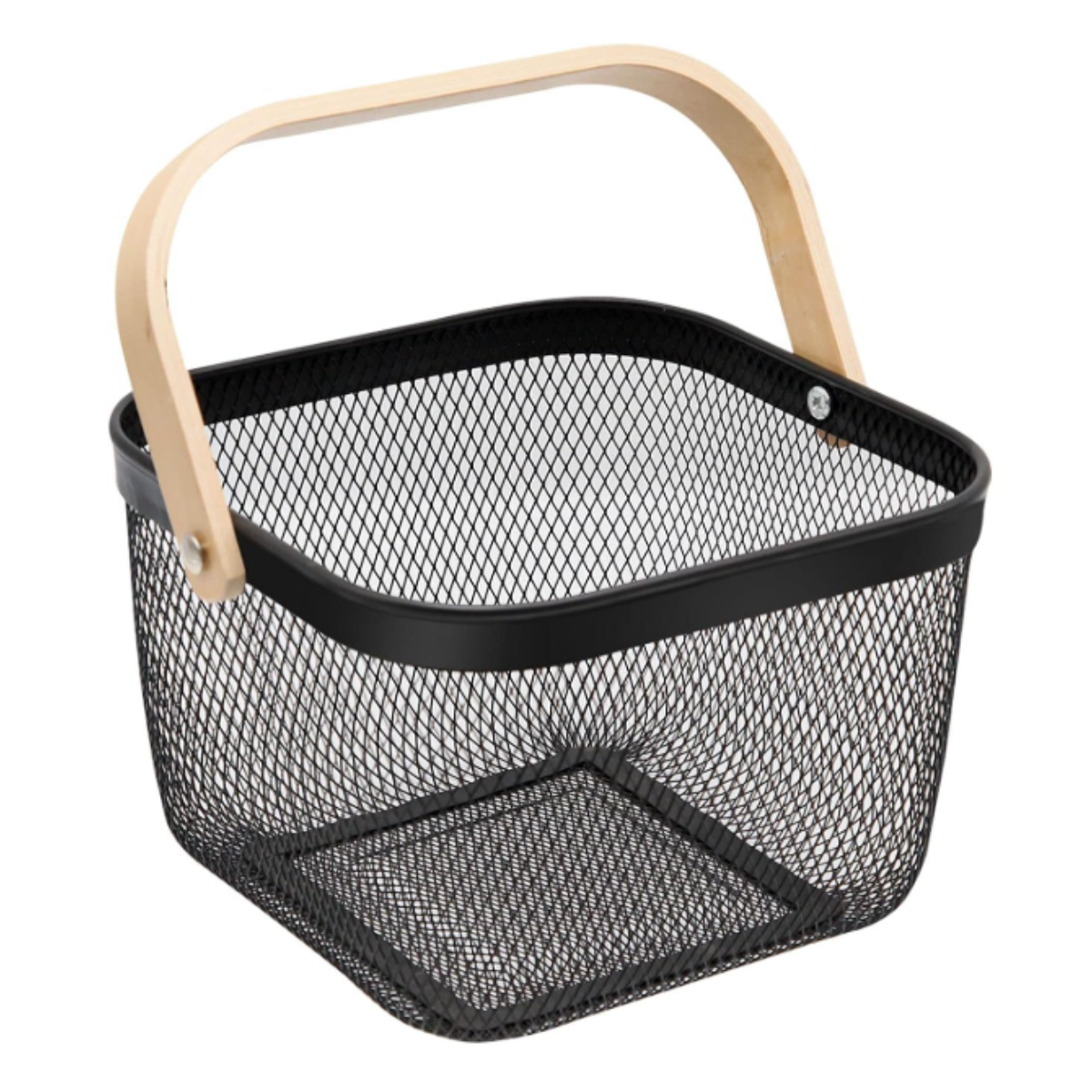 Canasto Metalico con manija de madera. Ideal para organización del hogar.