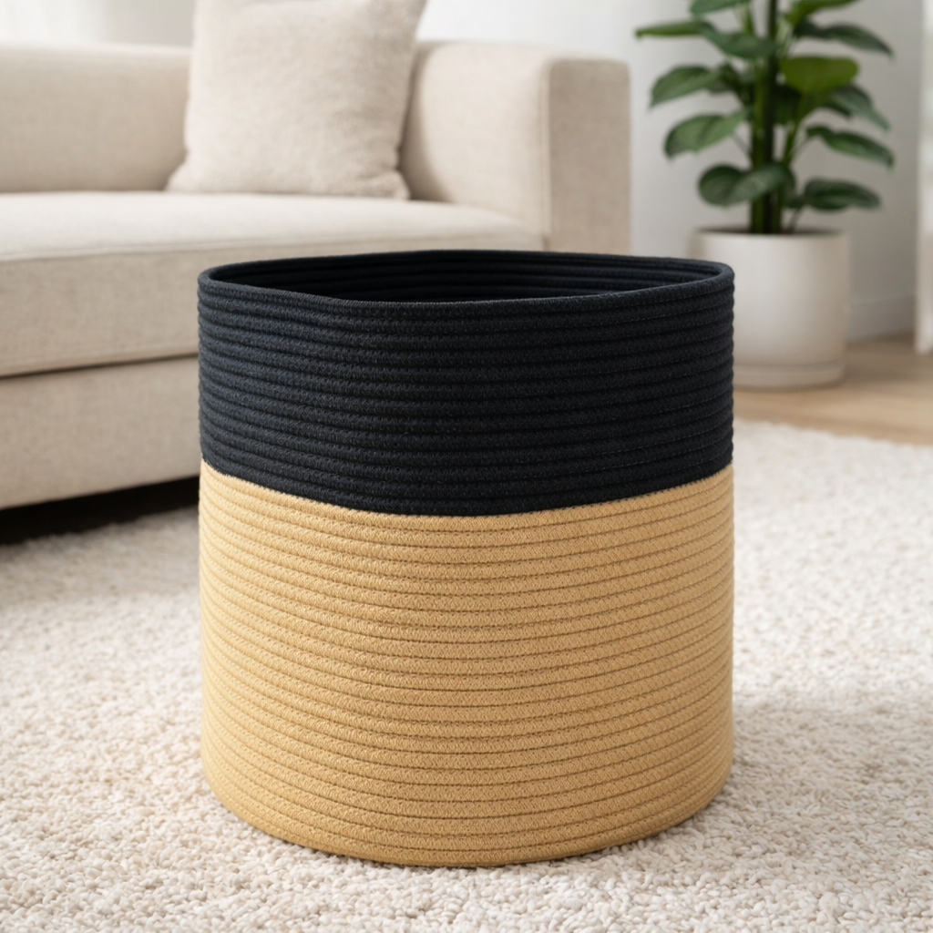 Canasto de guardado franja negra 64x36 cm