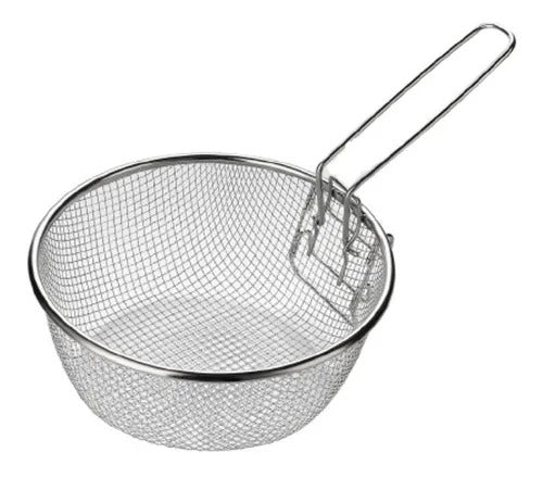 Canasto freidor de acero inoxidable con mango rebatible 22 cm Material del colador y el mango: Acero Inoxidable Medidas: Diámetro: 22 cm ; Profundidad: 9 cm ; Largo con el mango: 34 cm