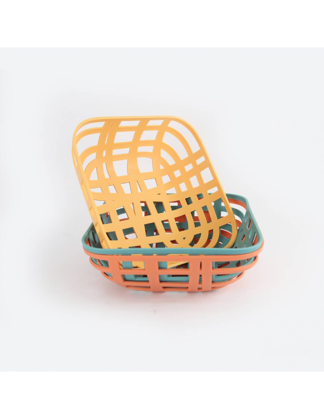 Canasto plástico 23x8cm cuadrado simula entrelazado 4 colores