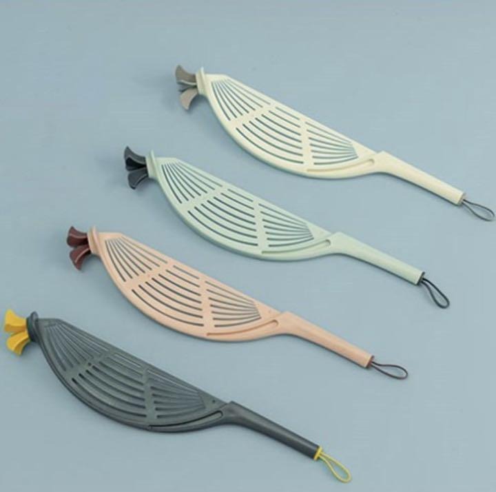 Colador borde de olla con punta desgranadora de arroz y anillo para colgar. Medidas: 29 cm x 6 cm