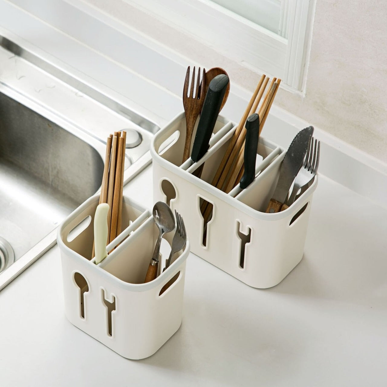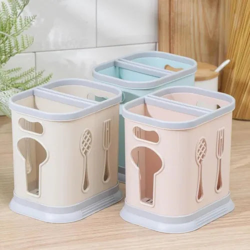 Cubiertero rectangular chico con divisiones que a su vez sirven para colocar cuchillos.