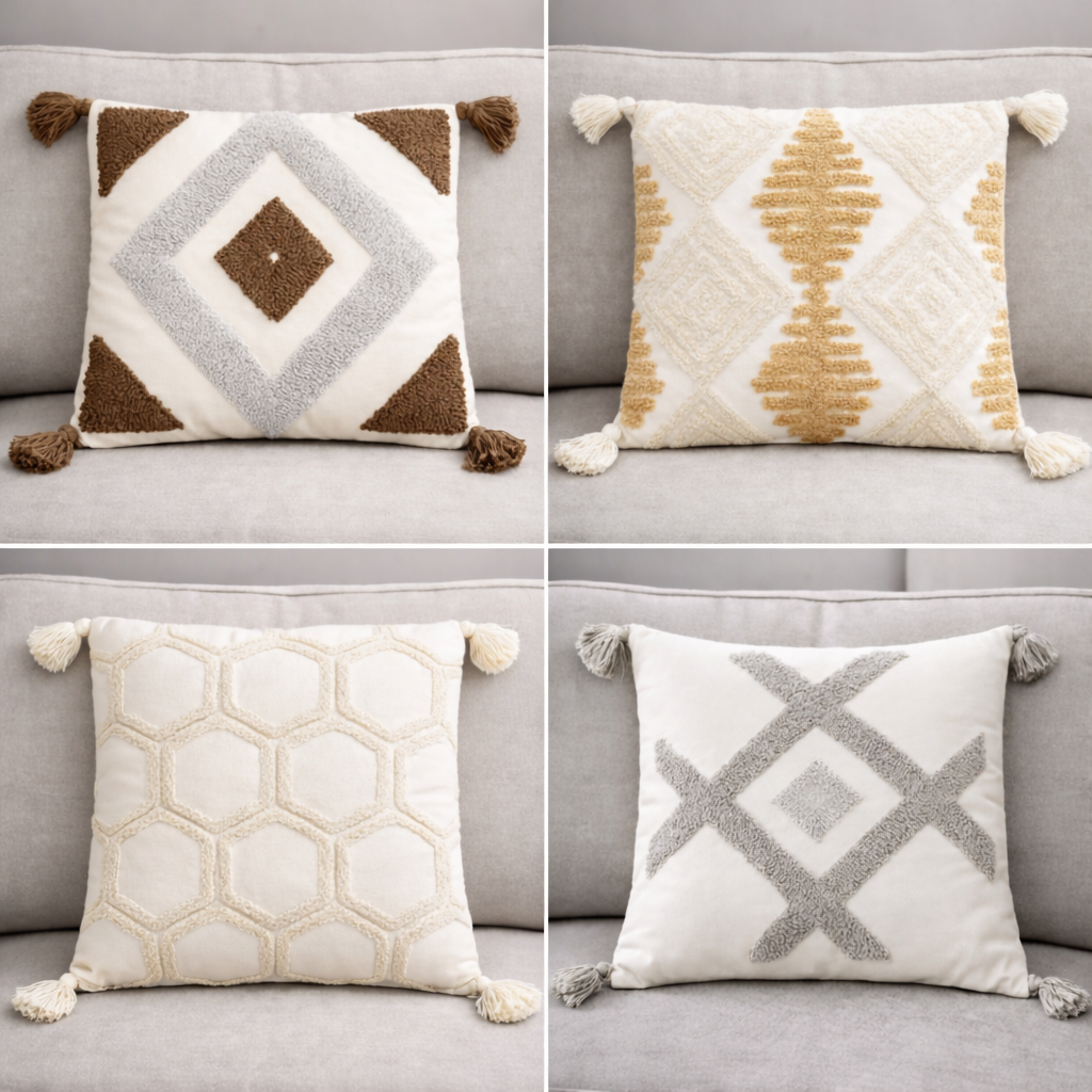 Funda de almohadón Rombos con flecos