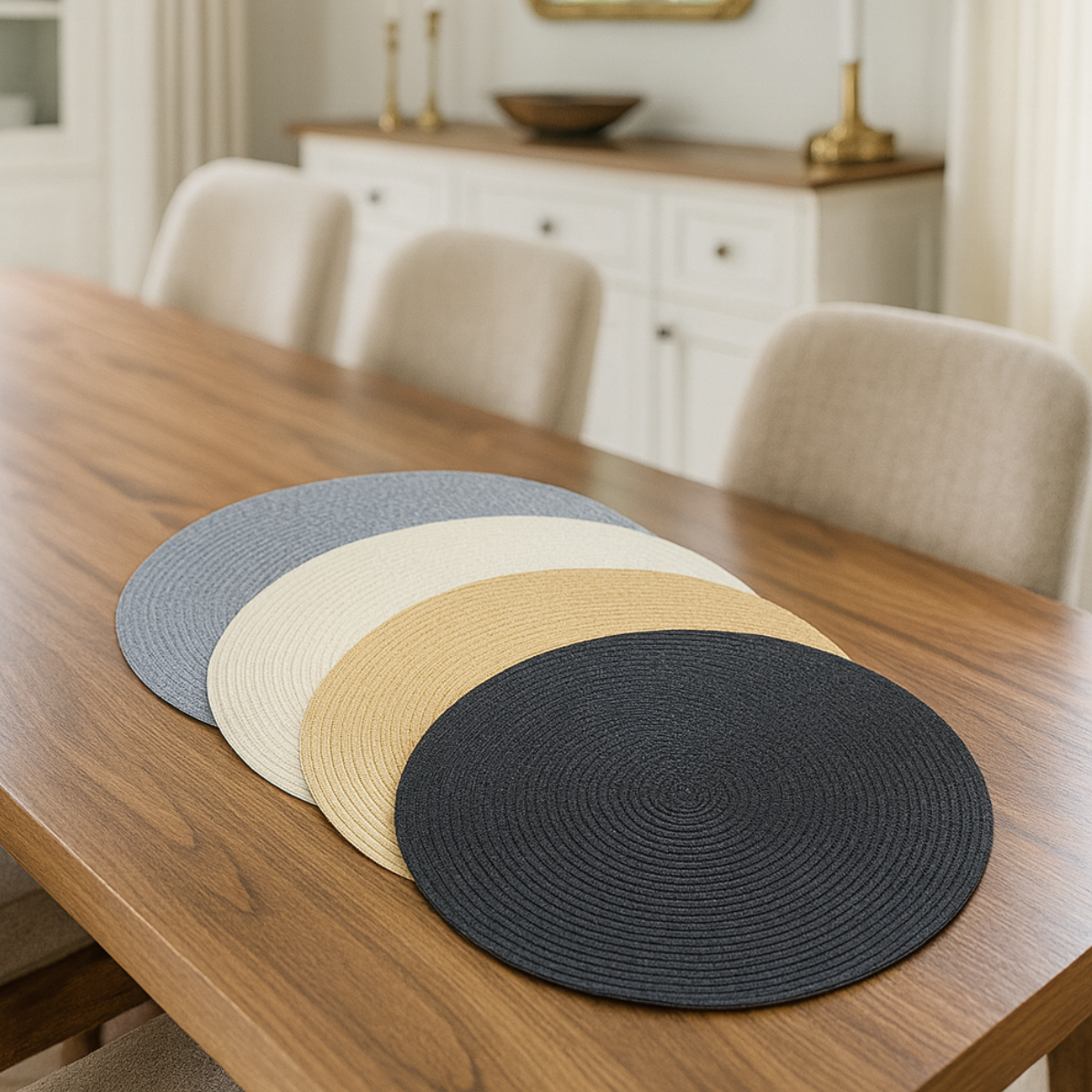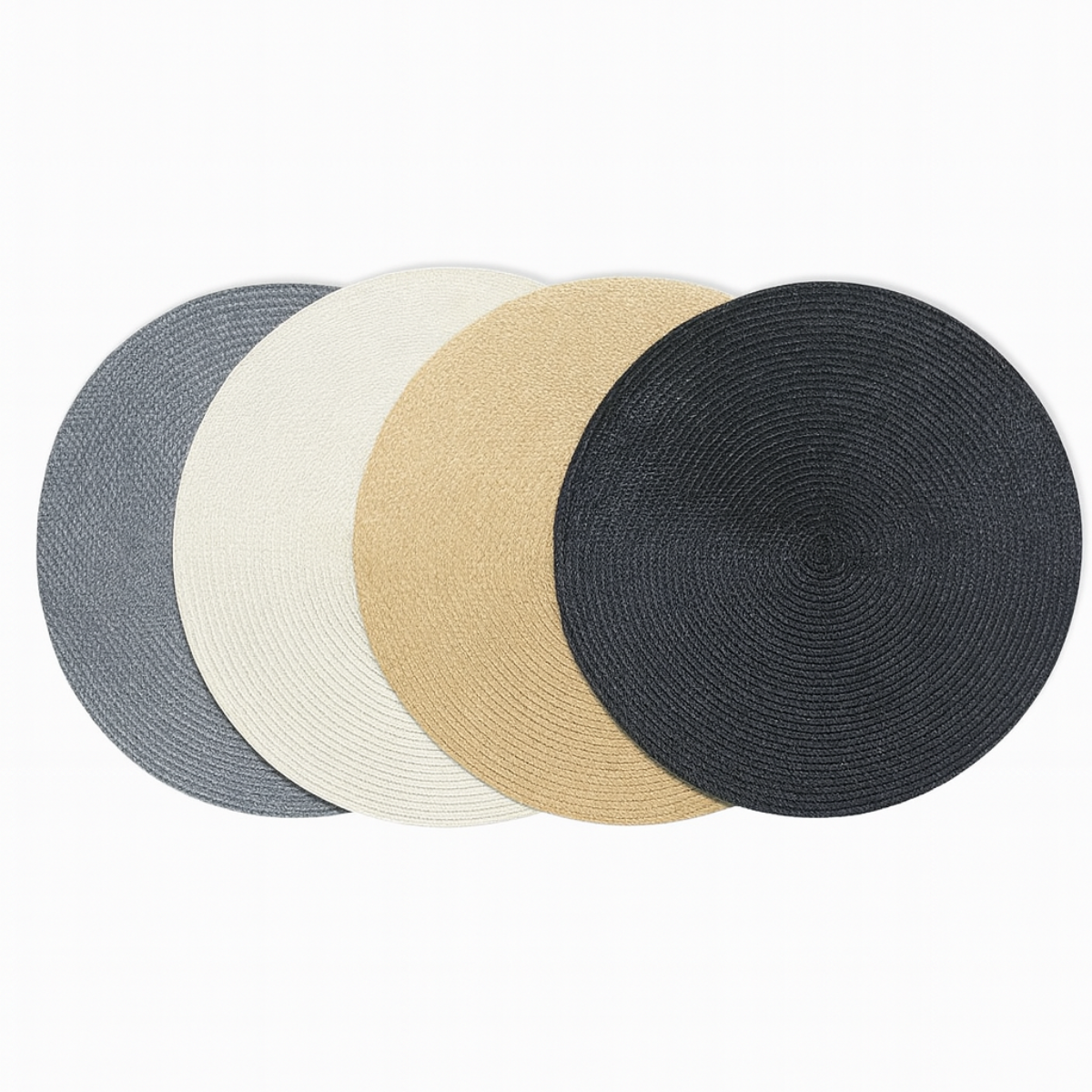 Individual de Mesa Redondo de Yute. Dale un estilo cálido y natural a tu mesa con este individual redondo. Su diseño rústico–moderno aporta textura y personalidad mientras protege tus superficies.