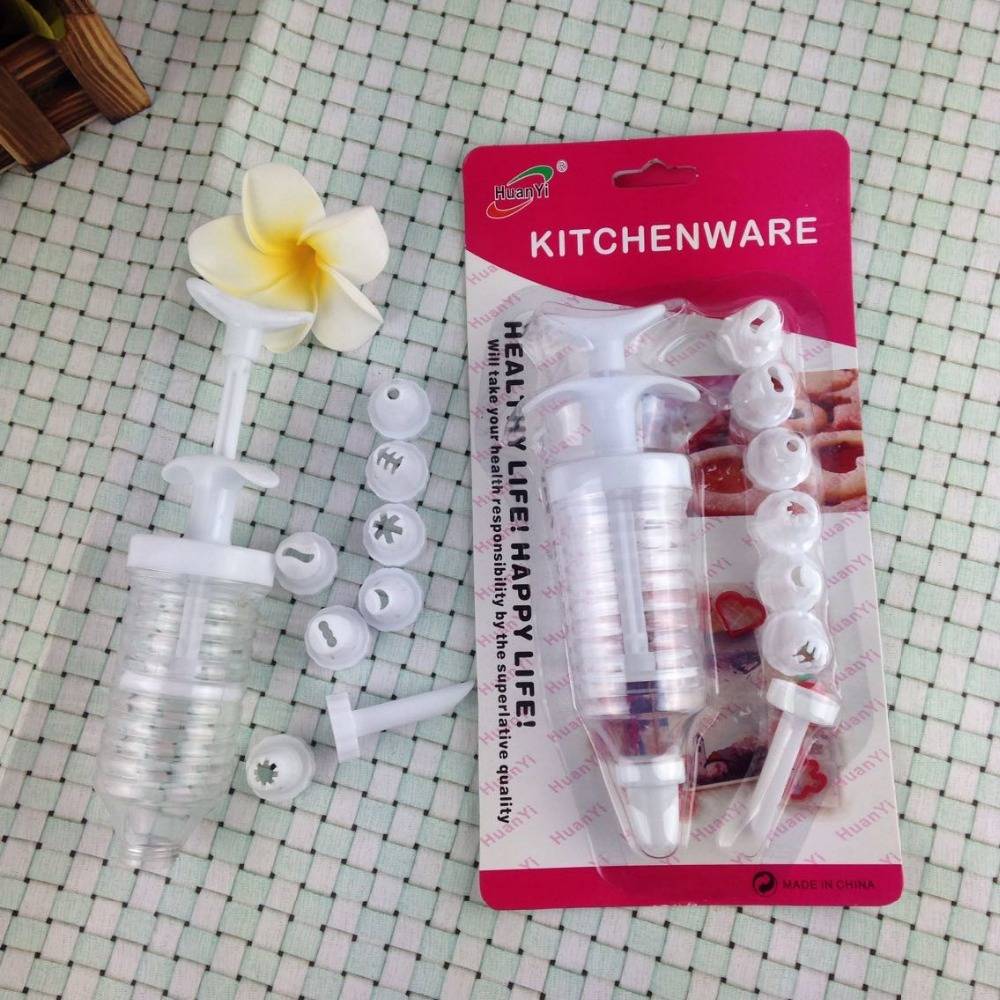Jeringa de reposteria plástica con 8 picos diferentes. Ideal para cualquier decoracion.