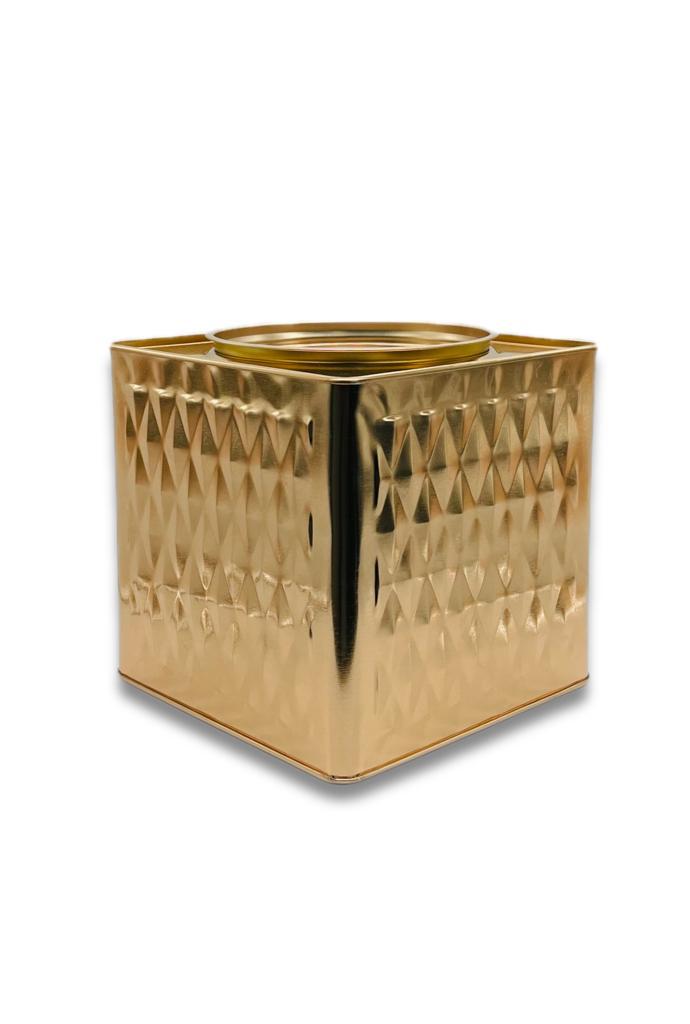 Lata cuadrada para galletitas con diseño de relieve. Medidas: 16 cm x lado