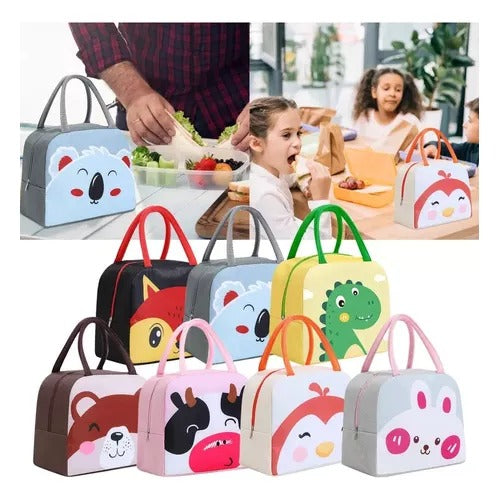 Lonchera de almuerzo con mango es resistente y cómoda de llevar. El estampado de animales de dibujos animados lo hace único y bonito Está fabricado con tela oxford. e interior termico MED. 23cm X 19cm X 13cm.