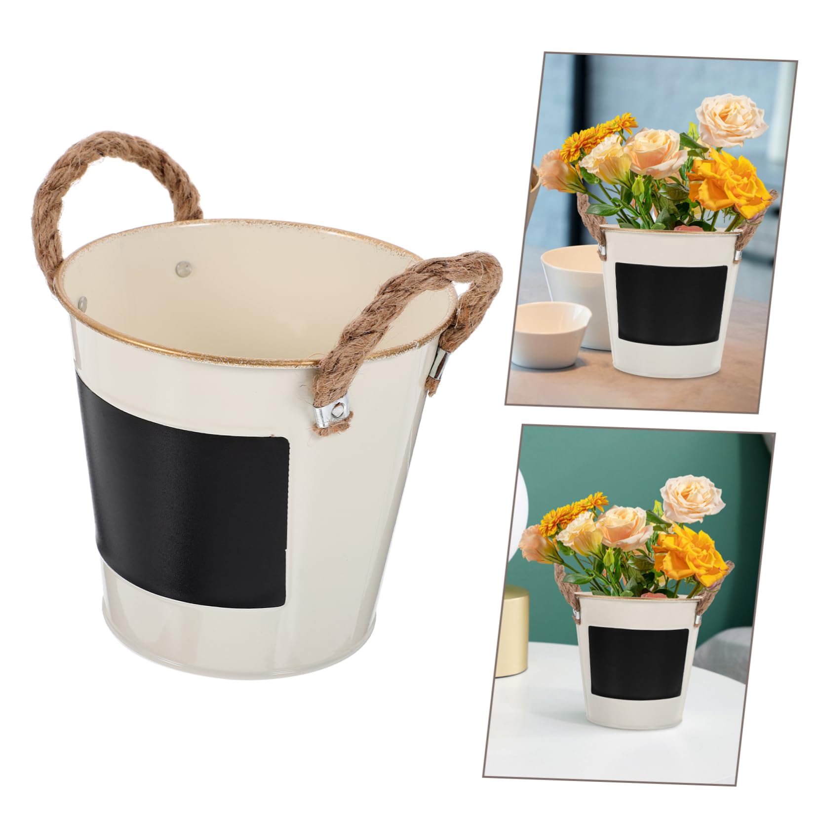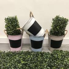 Practico macetero con pizarra, ideal para todo tipo de plantas. Deja un lindo mensaje o clasifica tus aromáticas. - Medidas: 12 cm alto - diametro boca: 13 cm - diámetro base: 9 cm