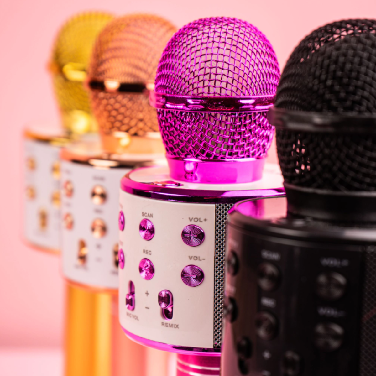 Micrófono inalámbrico con parlante incorporado que se conecta a tu celular por Bluetooth para que pongas tu música directo de Spotify, YouTube o de donde prefieras.