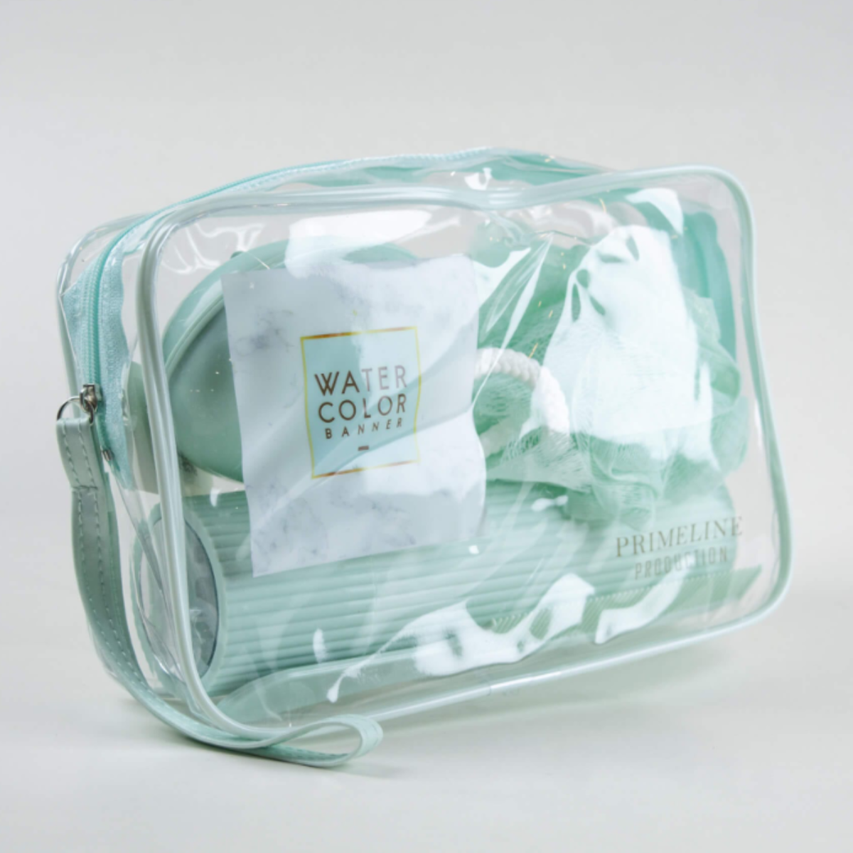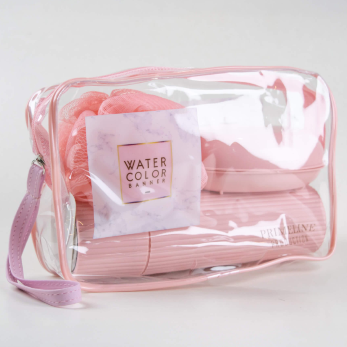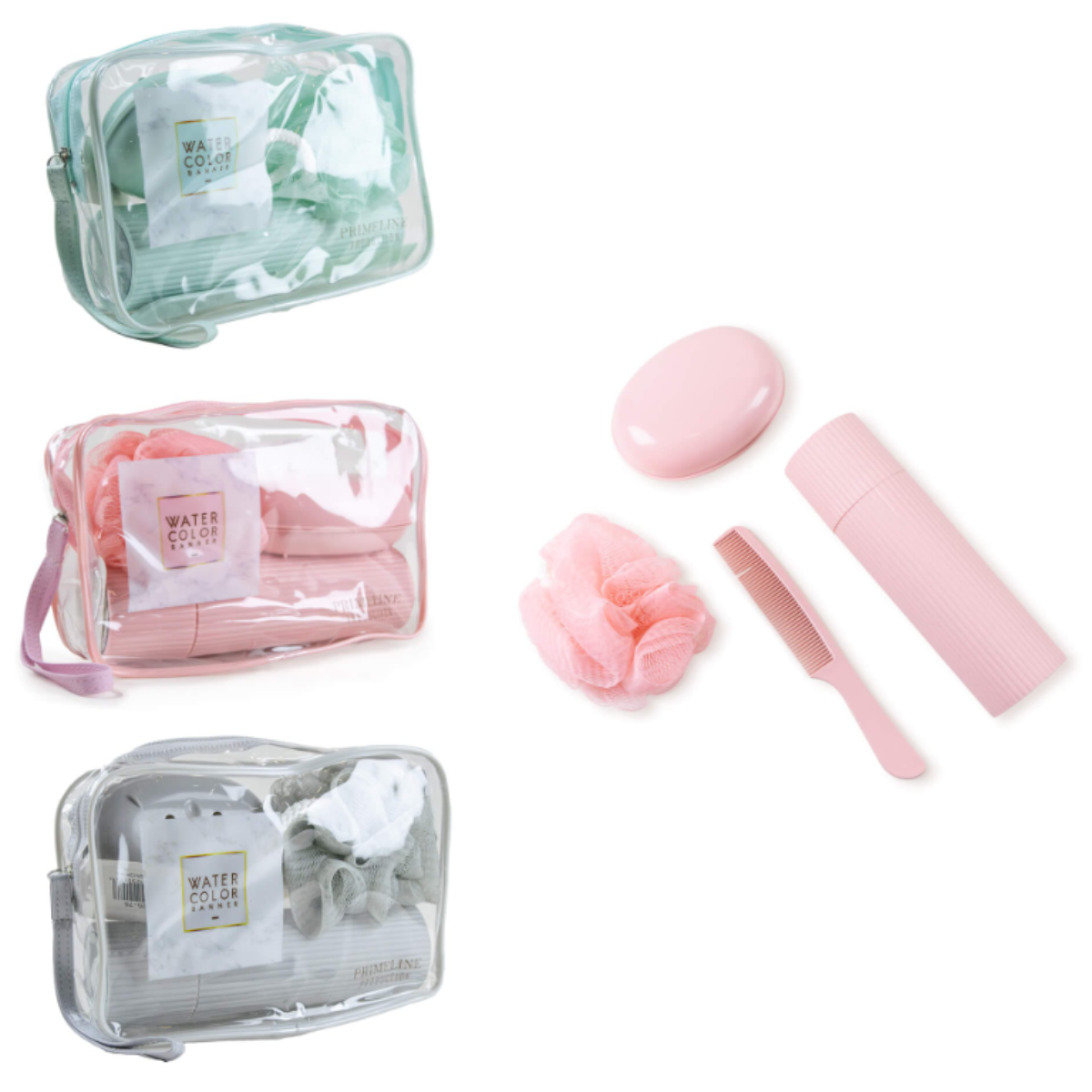 Set de artículos de tocador - compuesto por jabonera, esponja, peine y contenedor de cepillo de dientes. Fabricado en plástico resistente y liviano, diseñado para ahorrar espacio y mantener tus elementos personales limpios y organizados. Ideal para viajes, gimnasio o uso diario.