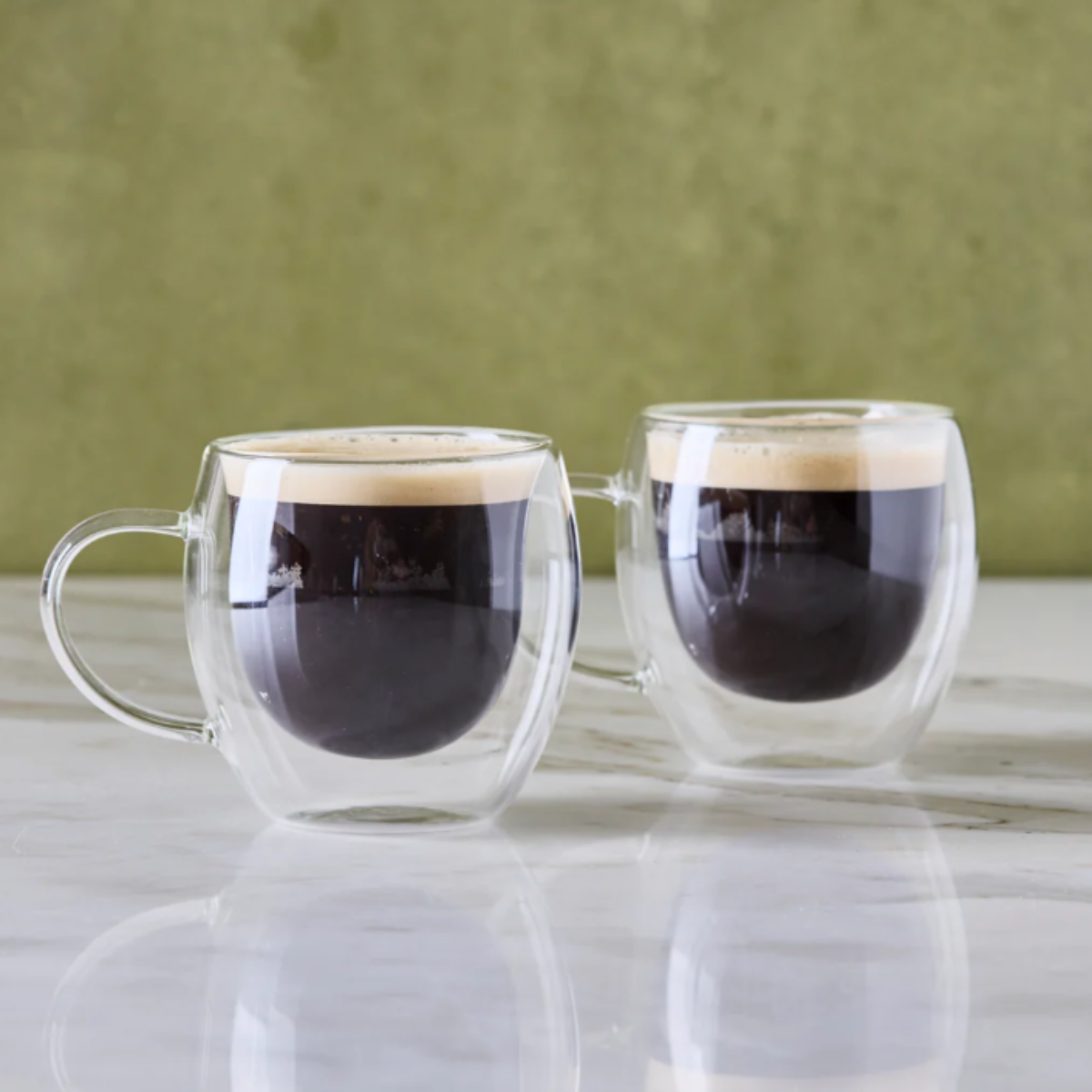 Set de 2 tazas de vidrio doble de 80 ml. Ideales para espresso, café corto o infusiones concentradas. Aportan un toque delicado y funcional a cualquier cocina.