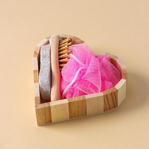 Set de spa con esponja, cepillo y piedra pomez en hermosa caja de presentacion con forma de corazon