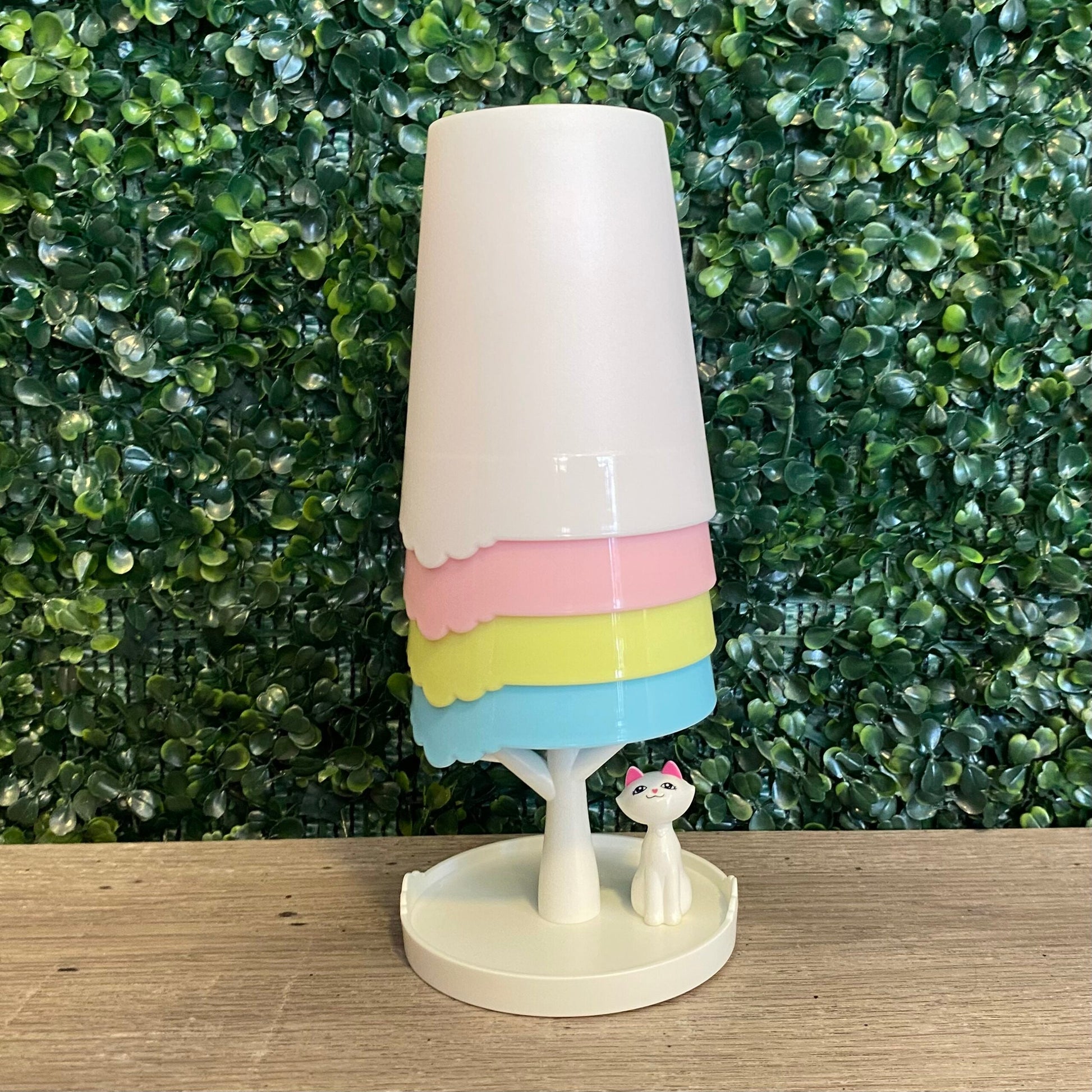 Set de 4 vasos apilables de colores con base de gatito y árbol Ideales para llenarlos de verano, logran darle alegría a tu día de pileta, playa o cumpleaños. Medidas aproximadas del producto con los vasos apilados: 9,6 cm x 22 cm. BTO X 48