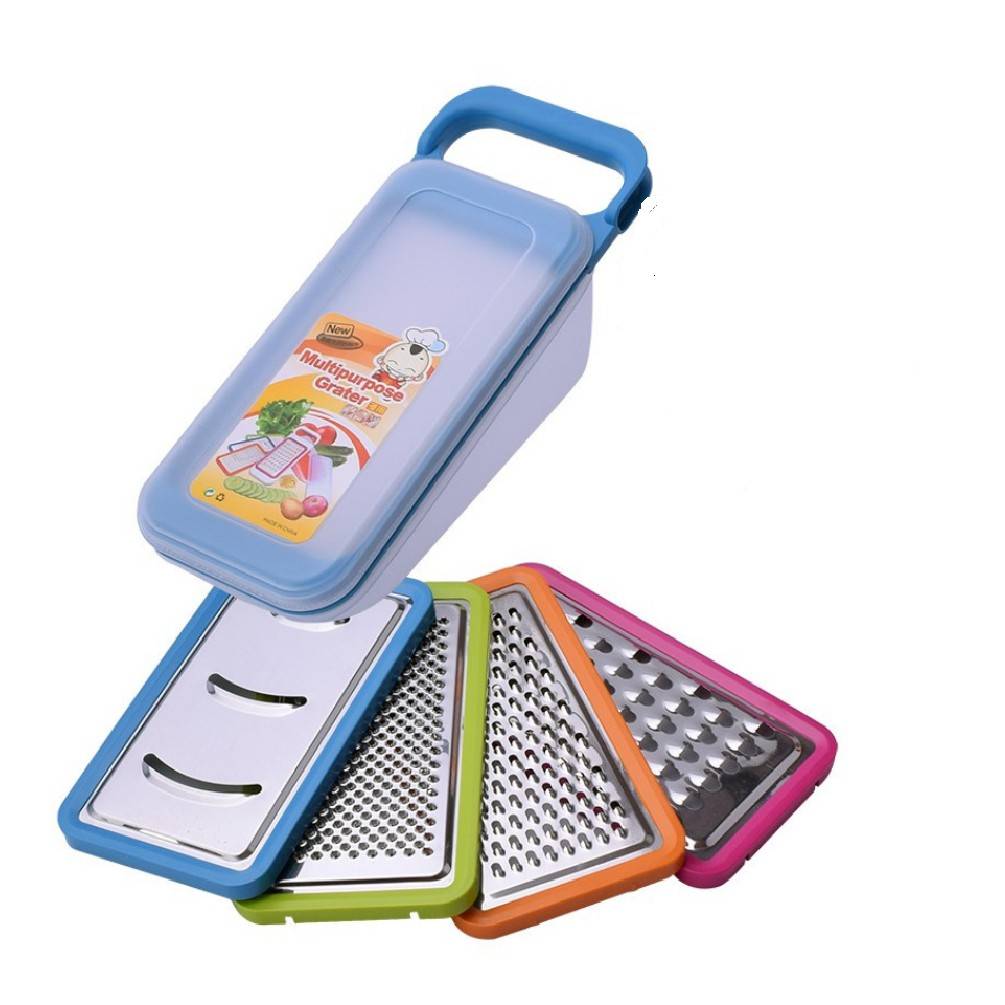 Con recipiente para ir almacenando los productos que se van rallando. 4 modelos de rallado o corte. Fácil de lavar y limpiar