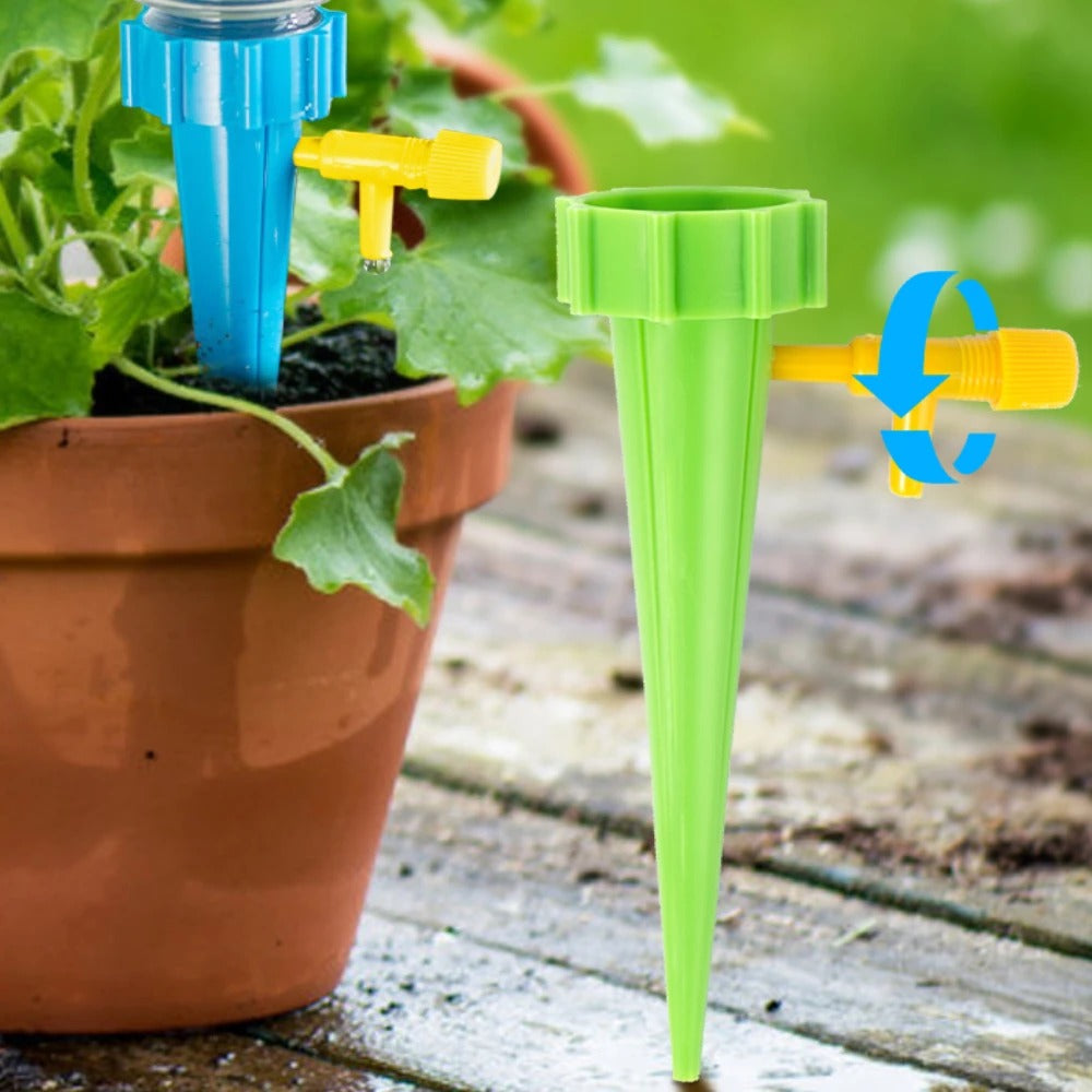 Set por 6 regadores por goteo. Practicas estacas que mantendrán a tus plantas siempre con la humedad justa.