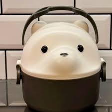 Lonchera térmica con diseño de oso de anteojos para niños. Características: Material: polipropileno. Tamaño del producto: 15.6 x 15.1 x 15.6 cm. El tamaño del cuenco es de aproximadamente 9,2 x 8,6 x 4,8 cm